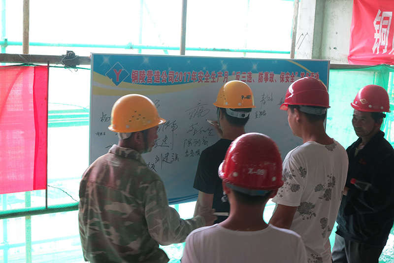 6月21日上午,公司安全生产月“同上一堂课”暨“安全签名宣誓”活动在青阳城改莲峰瑞景项目部成功举办,总经理章为民、常务副总王慧敏参加活动。